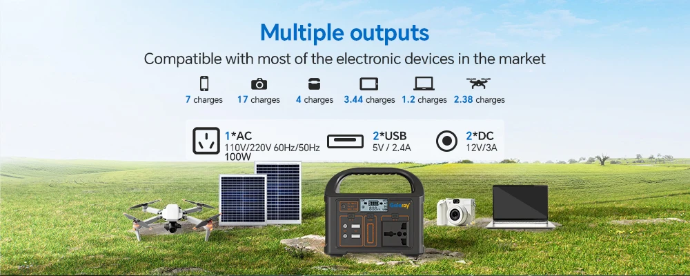 📱 Vienu metu maitina iki 5 įrenginių – USB, DC ir AC išėjimai